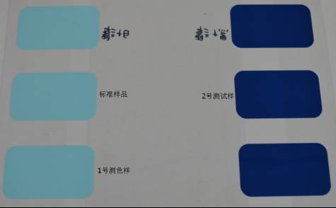 2号测试样与标准样相比,偏暗、偏红、偏蓝